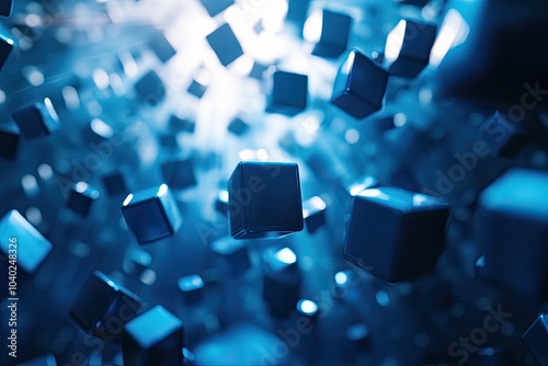 Wall mural : Floating blue cubes in a dynamic digital space create a mesmerizing abstract visual effect, perfect
