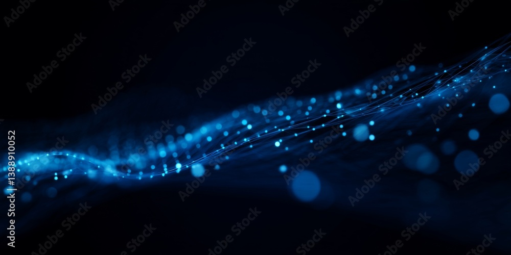 The watermark will not be included on Wall mural.: Floating blue light lines on dark tech background with depth and movement
