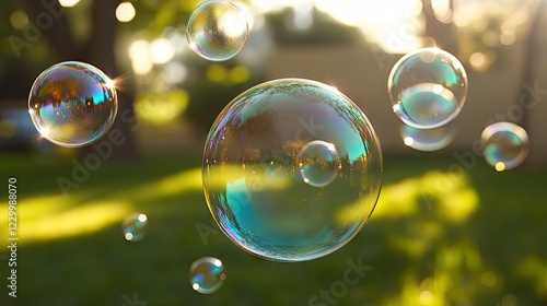 The watermark will not be included on Wall mural.: Floating bubbles with a metallic sheen, creating an abstract modern art effect -