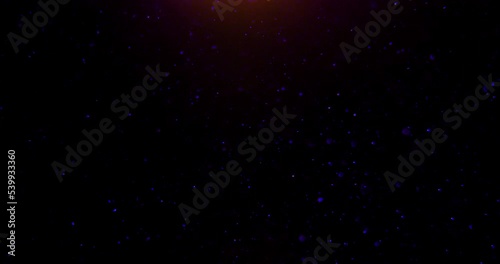 Wall mural : Floating dust particles with flare on dark backlight background - 3d animation of dynamic wind partic
