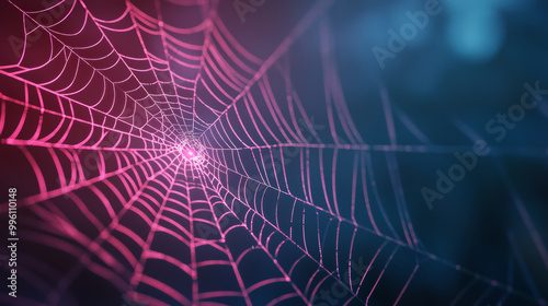 Wall mural floating glowing spider web with neon threads creates mesmerizing visual effect, showcasing intricat