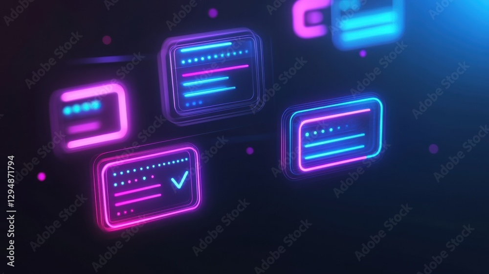 Wall mural floating message bubbles illuminate social media chat interface with glowing text notifications at n - Wall murals Wall mural floating message bubbles illuminate social media chat interface with glowing text notifications at n - Wall murals