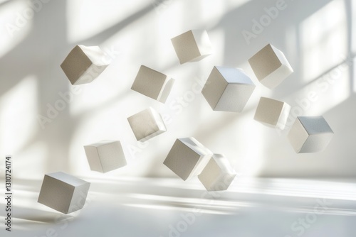 Wall mural floating minimalist 3d geometric shapes create a futuristic design with soft shadows and elegant ref