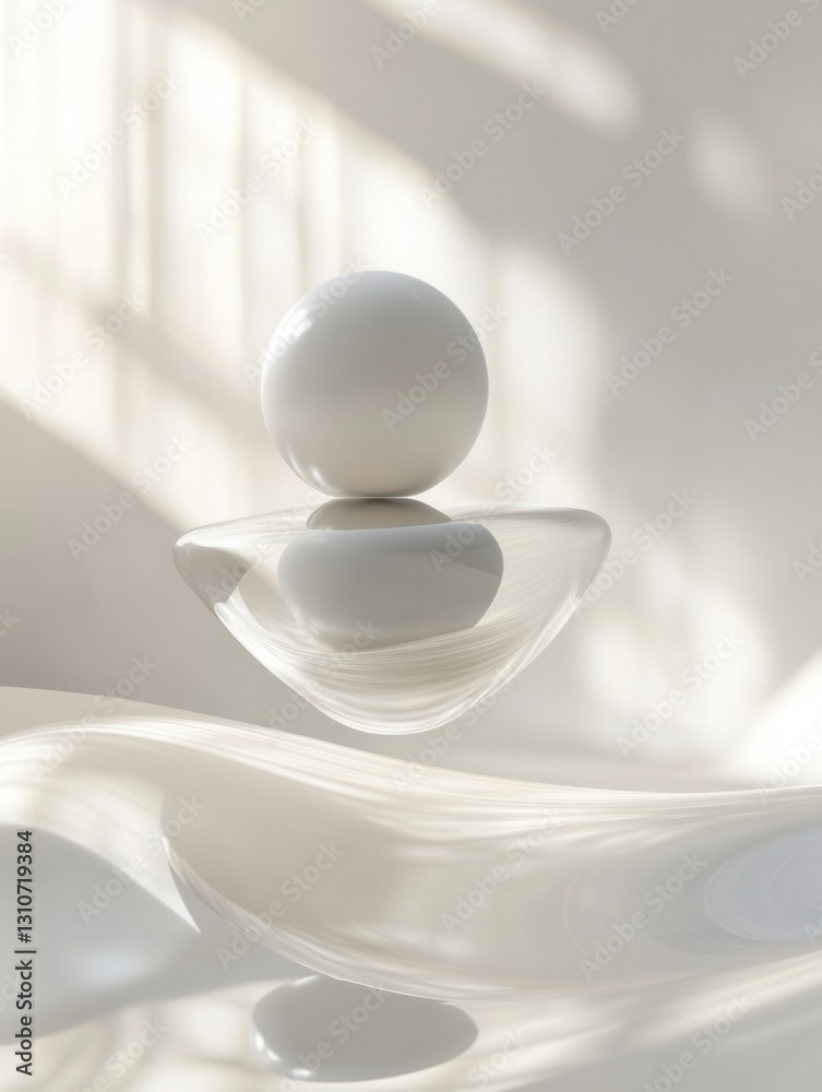 The watermark will not be included on Wall mural.: Floating minimalist shapes create a serene, futuristic atmosphere with soft shadows and elegant refl