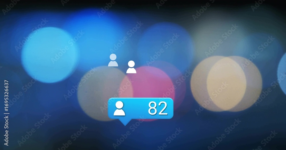 Floating three white user icons around bright blue notification bubble on screen, bokeh backgroundWall mural