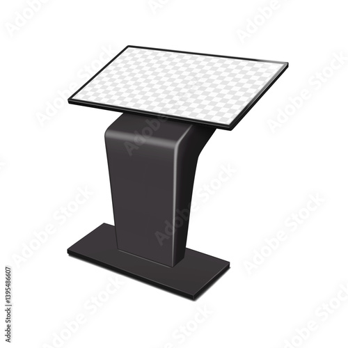 The watermark will not be included on Wall mural.: Floor standing touch screen self-service digital kiosk - realistic 3d vector mockup - angled tilt inte