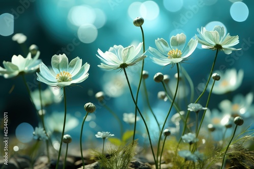 The watermark will not be included on Wall mural.: Floral fresh background in soft daylight with beautiful bokeh and pastel green colors, close-up macr