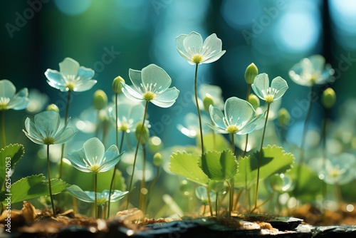 The watermark will not be included on Wall mural.: Floral fresh background in soft daylight with beautiful bokeh and pastel green colors, close-up macr