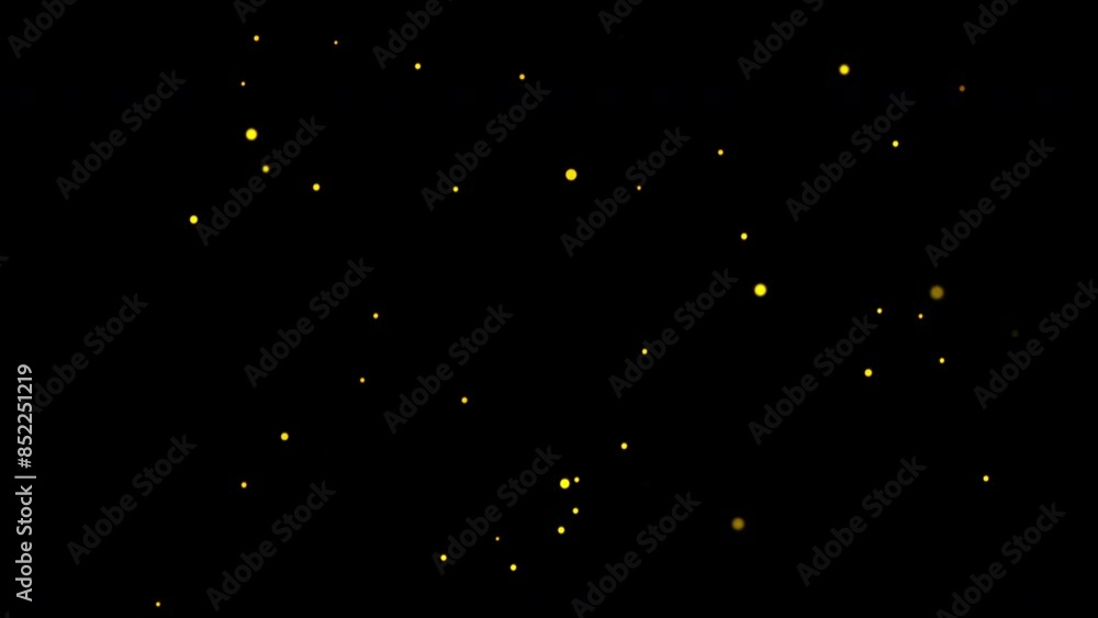 The watermark will not be included on Wall mural.: Flow up yellow gold star particles bokeh animation on black abstract background for screen project o