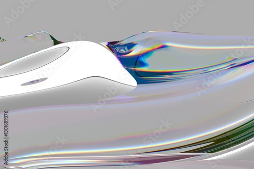 The watermark will not be included on Wall mural.: Flowing, iridescent surface with rainbow reflections creates a mesmerizing wave-like pattern in this