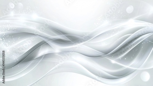 The watermark will not be included on Wall mural.: Flowing abstract line design with graceful waves in soft gray and white tones on a clean background