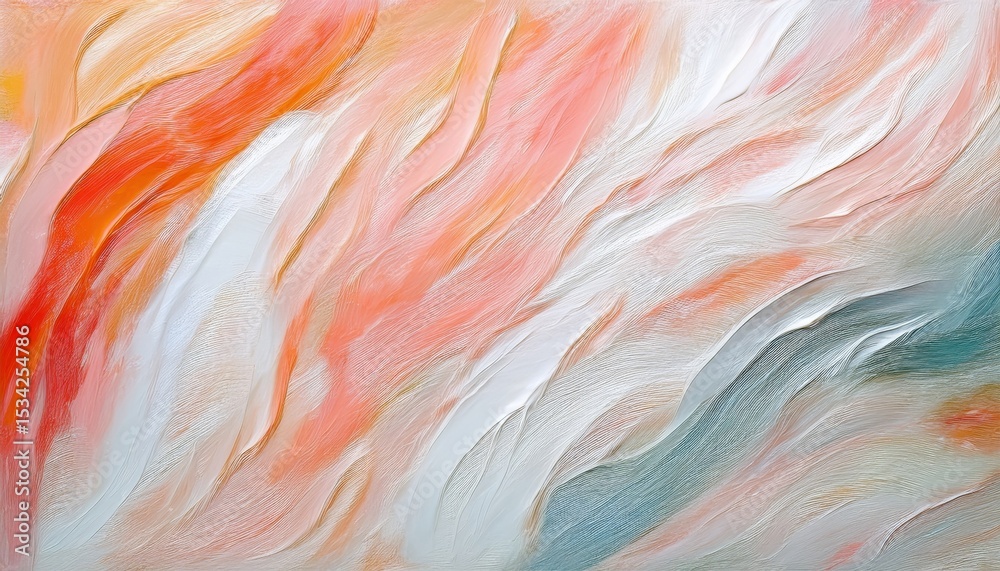 Wall mural : Flowing abstract texture in coral orange and creamy white with soft brush strokes and pastel gradien
