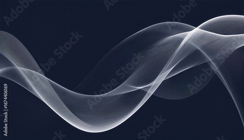 Wall mural flowing abstract white wave lines on dark blue background creating elegant futuristic motion texture