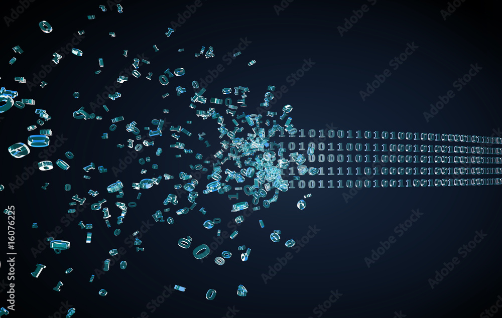 The watermark will not be included on Wall mural.: Flowing binary code in the dark