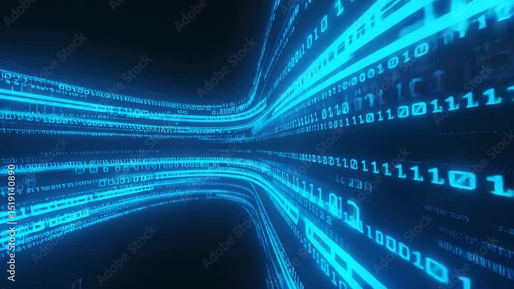 Wall mural flowing digital data, primarily composed of glowing blue binary code and abstract patterns against a - Wall murals Wall mural flowing digital data, primarily composed of glowing blue binary code and abstract patterns against a - Wall murals