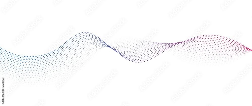 Wall mural : Flowing dot wave halftone gradient pattern on transparent background