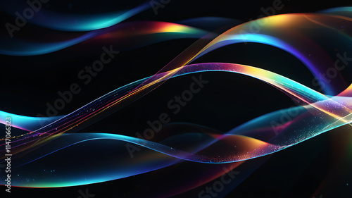 Wall mural flowing holographic curves forming abstract patterns with hints of rainbow colors on a dark futurist