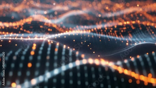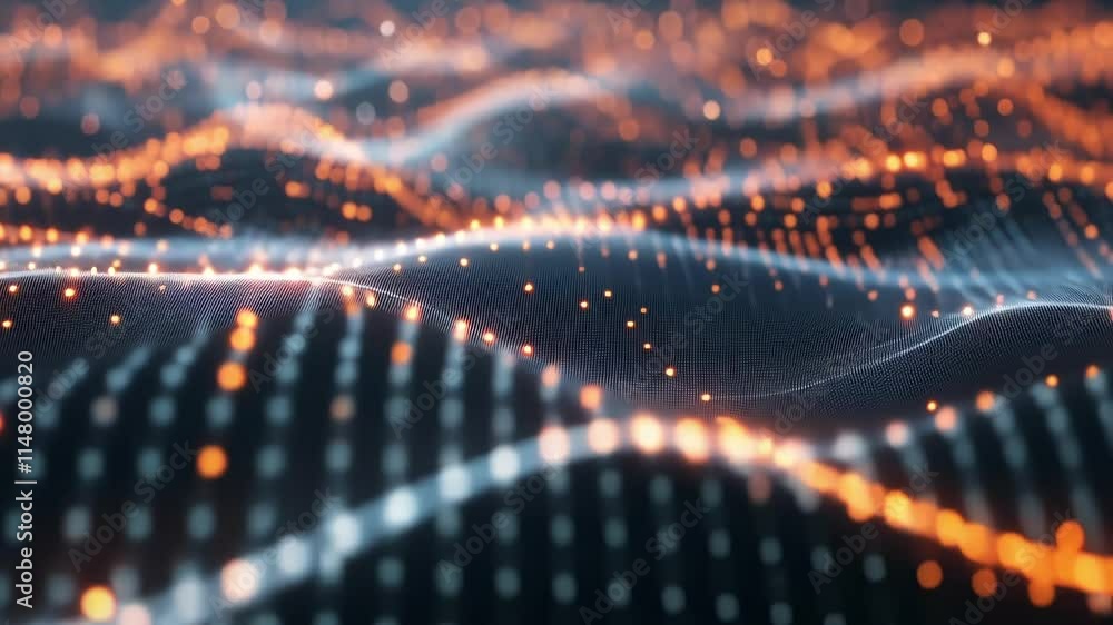 The watermark will not be included on Wall mural.: Flowing orange particles create a dynamic wave, symbolizing the vast expanse of big data and the sea