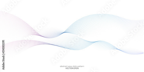Wall mural flowing particles wave pattern, blue and purple gradient color isolated on white background. vector