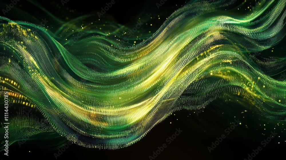 Wall mural flowing stream of binary code in green and yellow hues, representing data transfer and technology - Wall murals Wall mural flowing stream of binary code in green and yellow hues, representing data transfer and technology - Wall murals