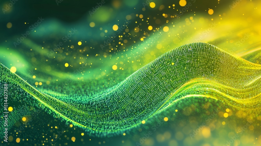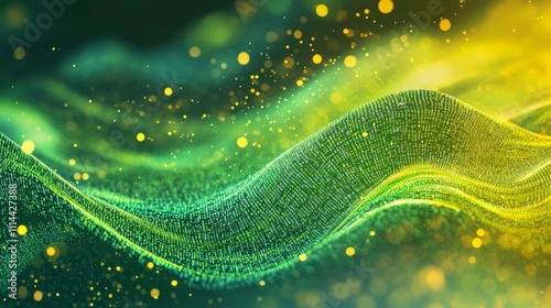 The watermark will not be included on Wall mural.: Flowing stream of binary code in green and yellow hues, representing data transfer and technology