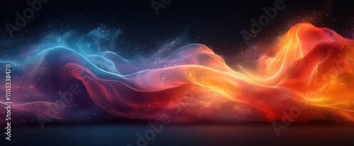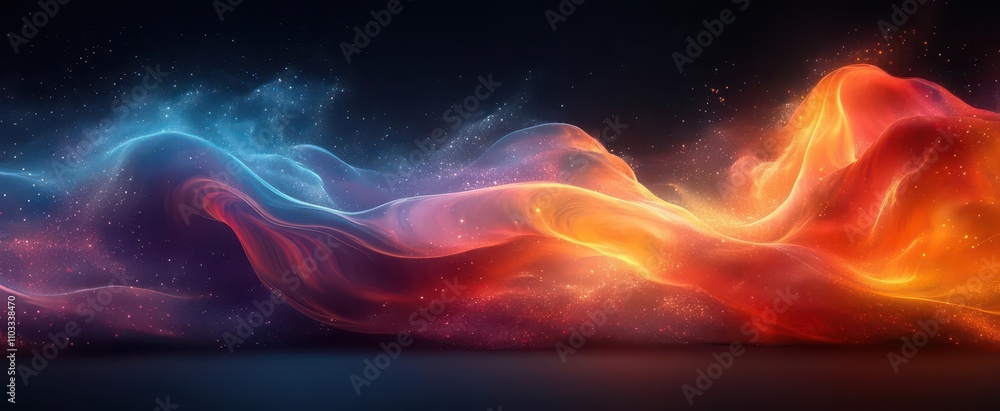 The watermark will not be included on Wall mural.: Fluid abstract design showcasing a mesmerizing iridescent wave in motion blending a spectrum of vivi
