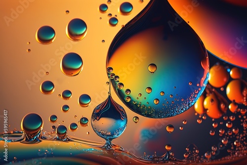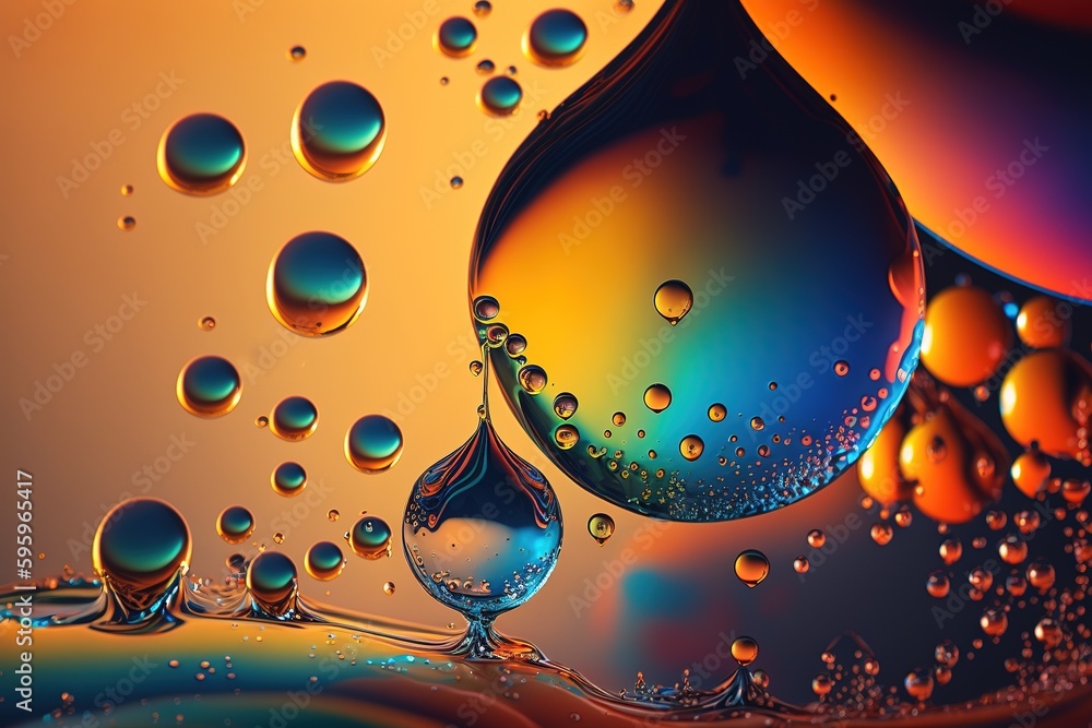 Wall mural fluid oil drips on a multicolored abstract backdrop. generative ai