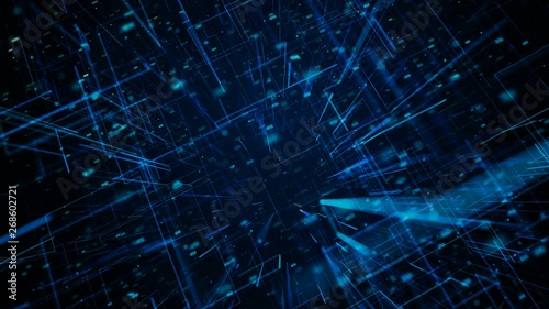 Wall mural fly through abstract 3d rendering of a scientific technology data binary code network conveying conn
