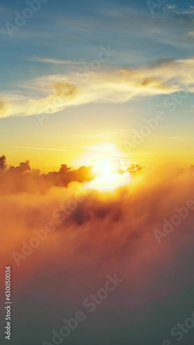 The watermark will not be included on Wall mural.: Flying above the clouds - aerial view of clouds and sunset sun - traveling by air perfect background -