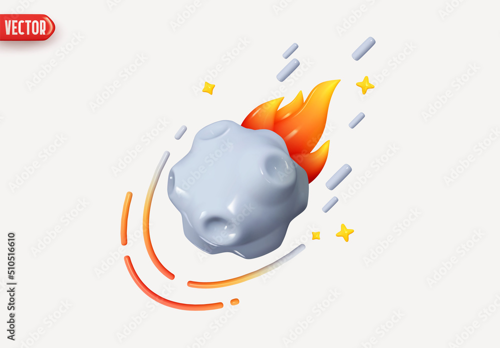 Wall mural flying asteroid with fire. abstract minimal comet. meteorite flies and plume of fire. meteor stone.  - Wall murals Wall mural flying asteroid with fire. abstract minimal comet. meteorite flies and plume of fire. meteor stone. - Wall murals