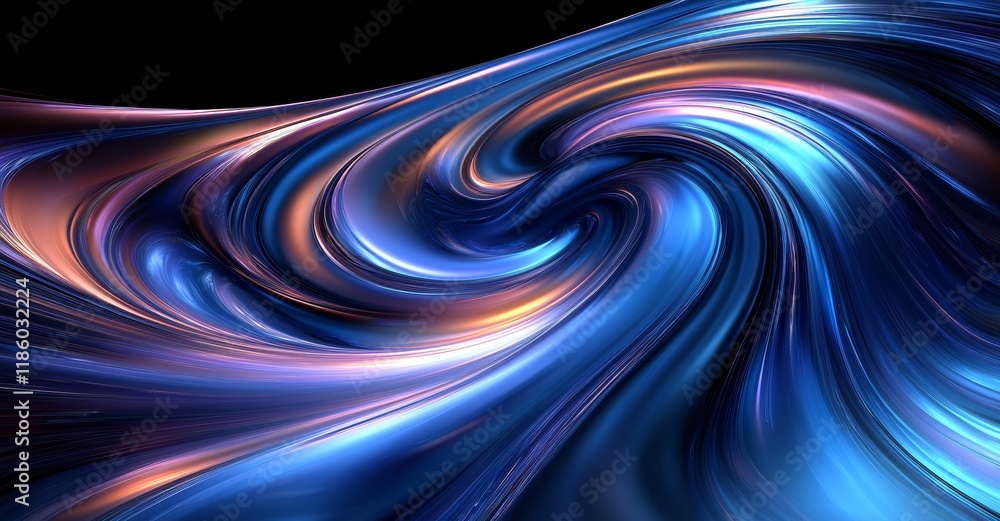 The watermark will not be included on Wall mural.: Flying blue asteroids and meteorites with motion graphics for design on a black background using ble