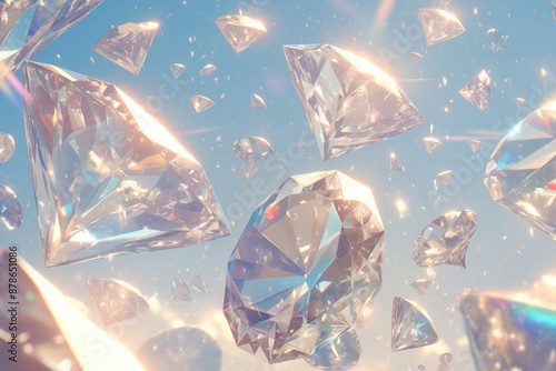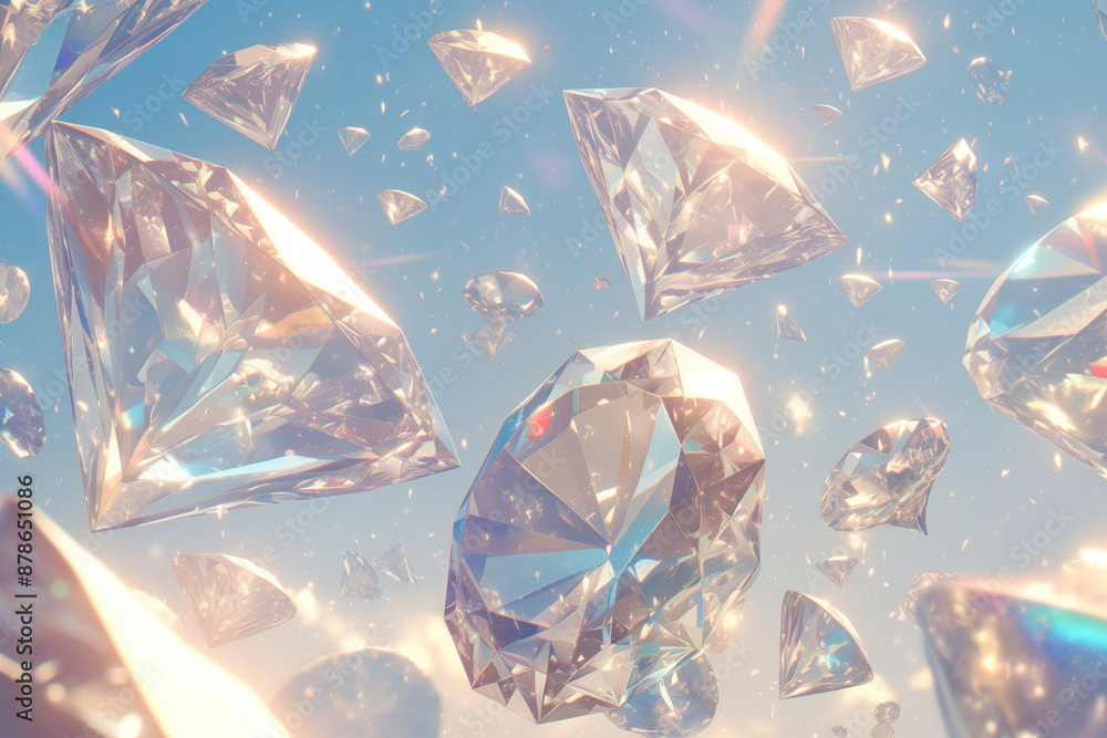 Wall mural flying diamonds sparkling in the sun. - Wall murals Wall mural flying diamonds sparkling in the sun. - Wall murals