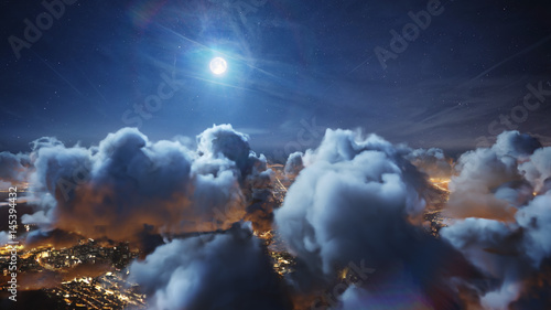 Wall mural flying over the deep night timelapse clouds with moon light. seamlessly looped animation. flight thr - Wall murals Wall mural flying over the deep night timelapse clouds with moon light. seamlessly looped animation. flight thr - Wall murals