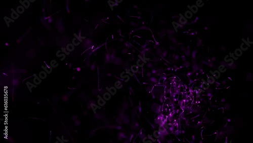 Wall mural flying sparks of blue-violet color motion as animated 3d abstract introduction decoration explosion