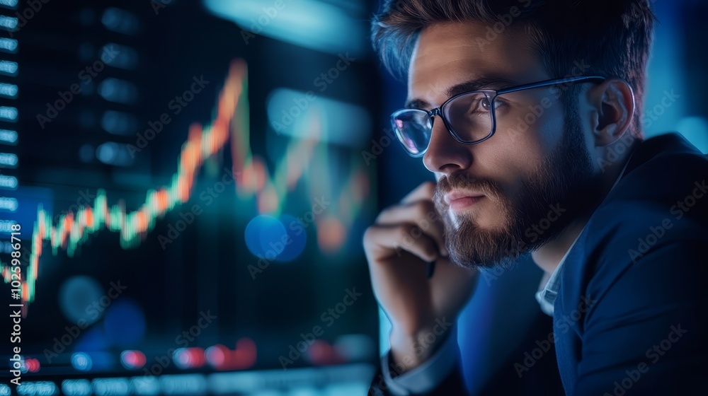 Wall mural : Focused developer analyzing code on computer screen in modern workspace focused
