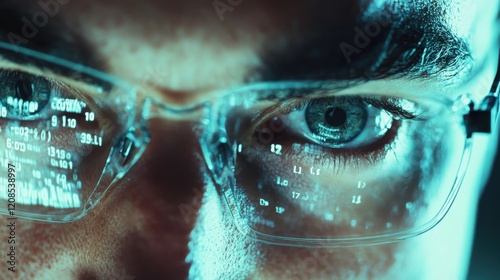 Wall mural focused developer coder wears glasses working on computer looking at programming code data cyber sec - Wall murals Wall mural focused developer coder wears glasses working on computer looking at programming code data cyber sec - Wall murals