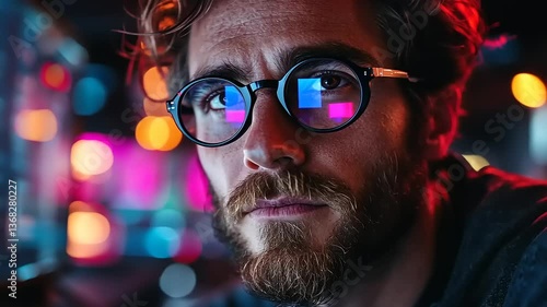Wall mural : Focused individual working on computer programming in a vibrant, tech-inspired environment