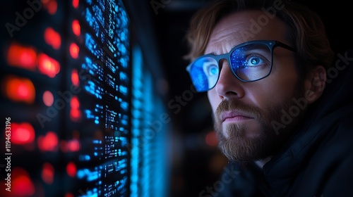 Wall mural focused man analyzing data on a screen.