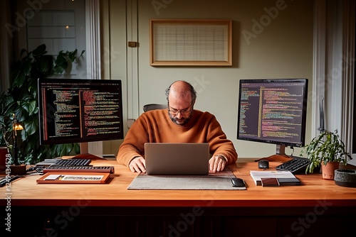 The watermark will not be included on Wall mural.: Focused programmer at work
