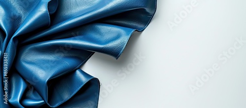 Wall mural fold blue leatherette sing on white background. copy space image. place for adding text and design