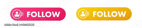 Wall mural : Follow button set in flat design style - gradient follow button interface for web and apps -