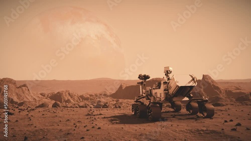The watermark will not be included on Wall mural.: Footage of nasa's mars rover traveling across the surface of mars towards saturn