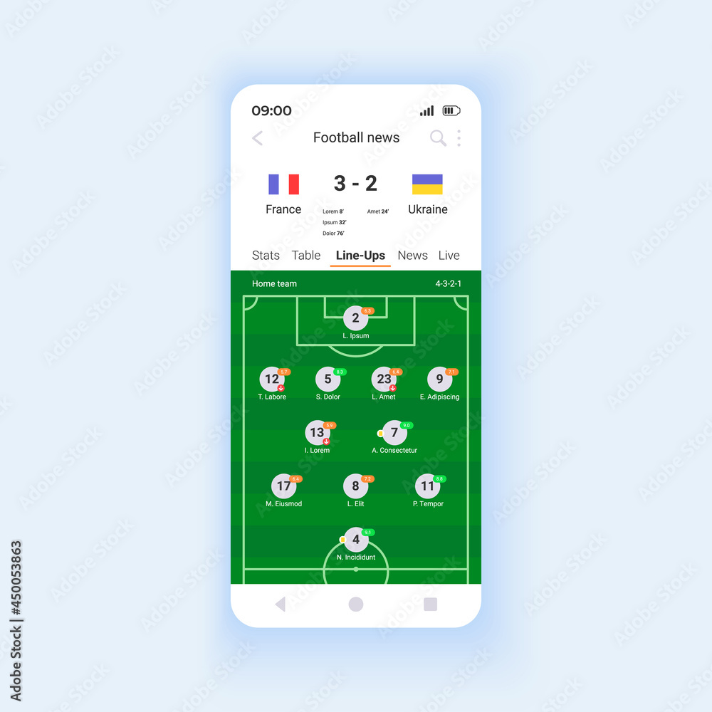 Wall mural football news and results smartphone interface vector template. mobile app page design layout. offic - Wall murals Wall mural football news and results smartphone interface vector template. mobile app page design layout. offic - Wall murals