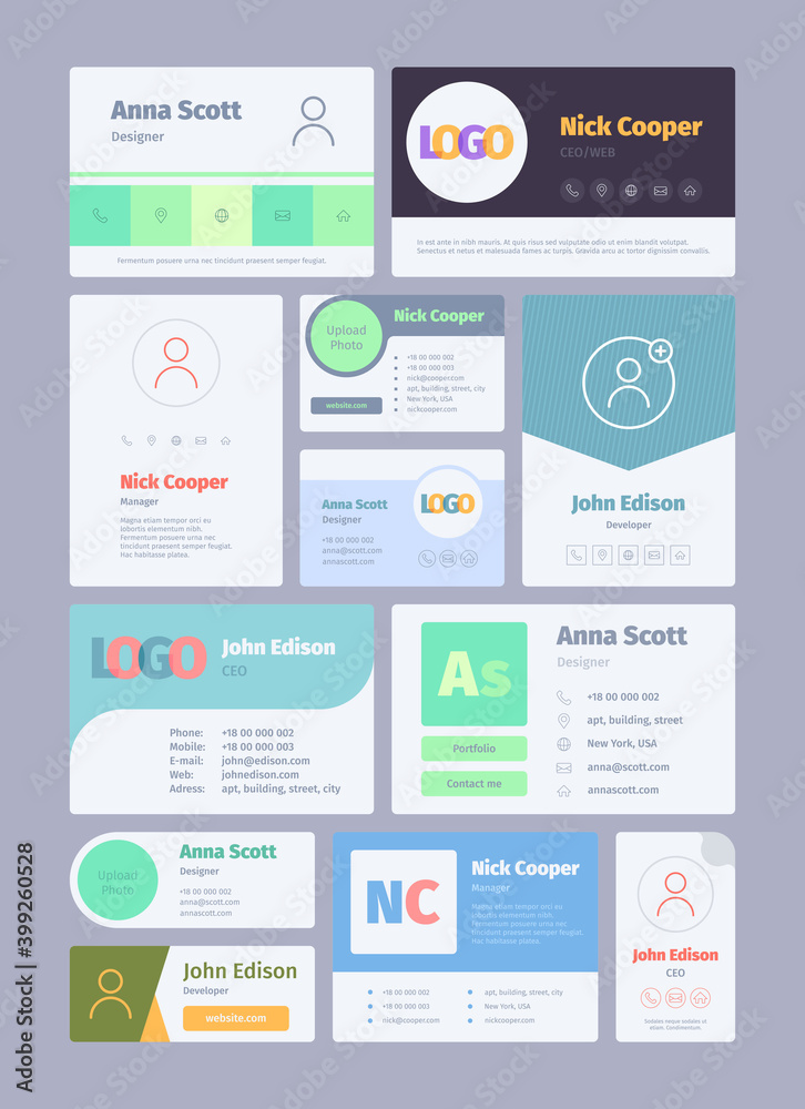 Wall mural forms for email signature. business card for email authors emailer designs web ui garish vector temp