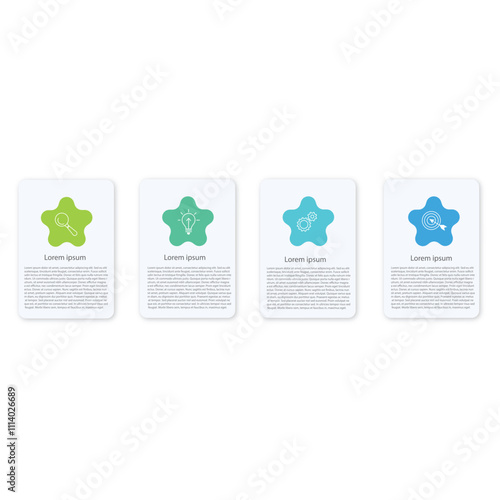 Wall mural four square paper white elements with colorful circles placed in horizontal row. concept of 4 succes