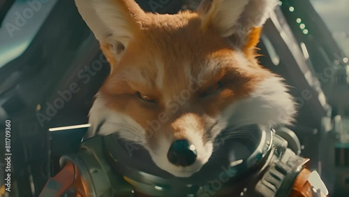 Fox astronaut in spaceship cockpit with ai generated - Wall mural