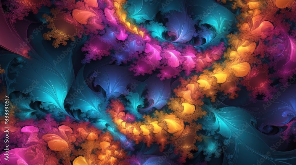 The watermark will not be included on Wall mural.: Fractal background featuring a vivid blend of abstract colors, creating a mesmerizing visual effect