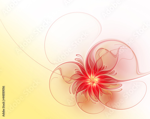 Wall mural : Fractal beautiful golden-red flower on gradient background