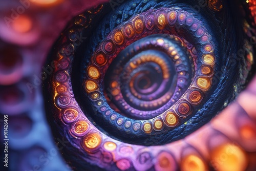 The watermark will not be included on Wall mural.: Fractal dimension portal swirling vortex of geometric patterns and vibrant colors leading into infin