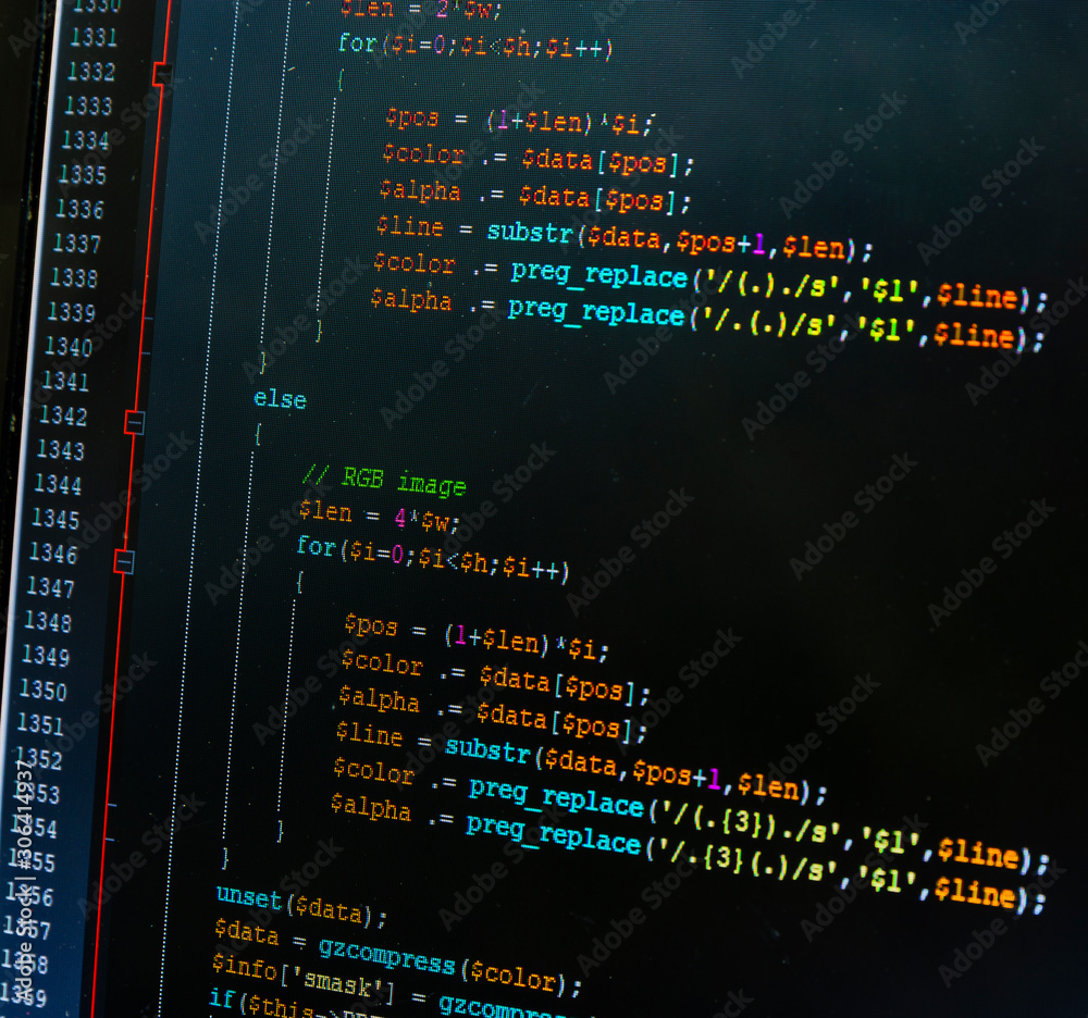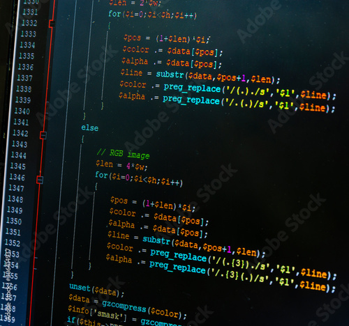 Wall mural fragment php code on dark background in code editor. close-up of a laptop screen with the code writt - Wall murals Wall mural fragment php code on dark background in code editor. close-up of a laptop screen with the code writt - Wall murals